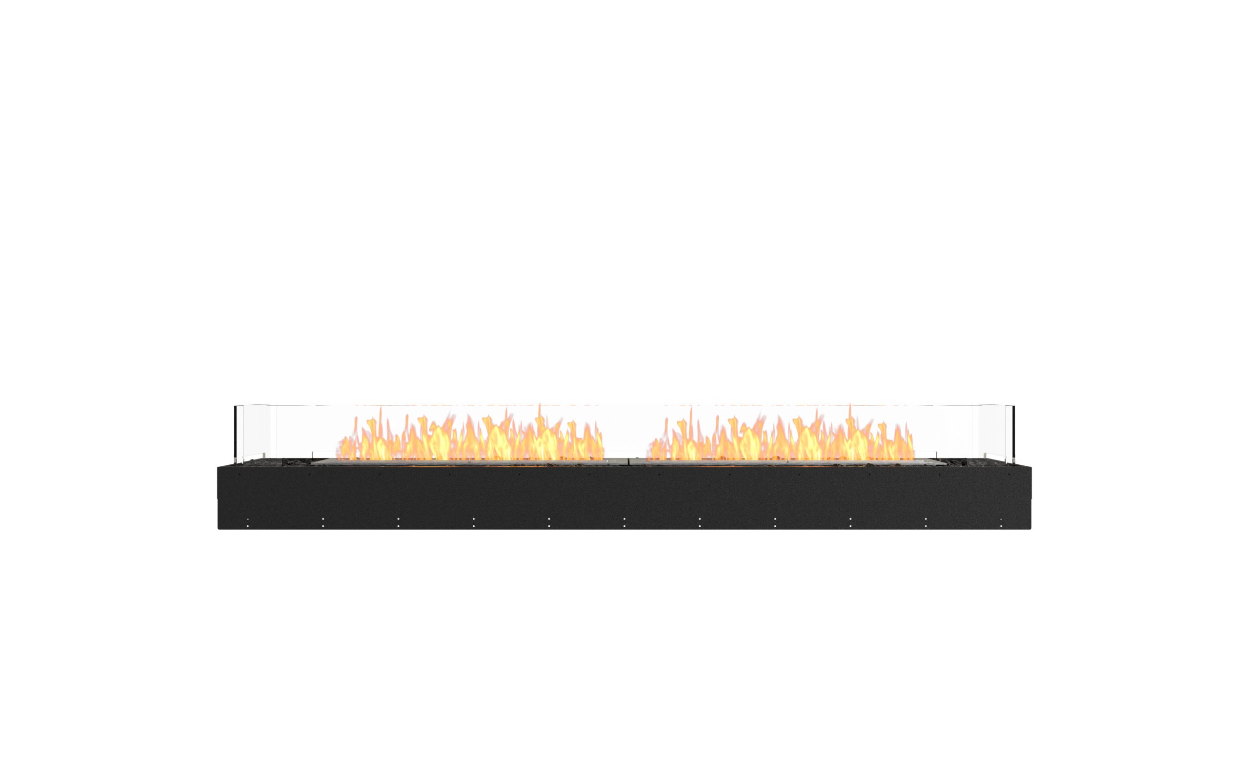 Available in a timeless black finish, Flex Fireboxes come with stainless steel burners and black glass charcoal.