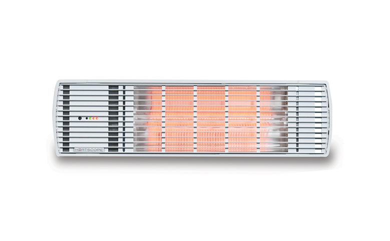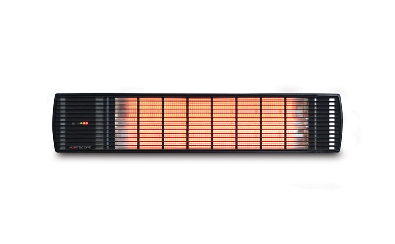 HEATSCOPE® Spot radiant heaters produce a subtle orange glow which is only 30-40% of the light output of the traditional radiant heaters. The reduced light output is due to the use of a color matching grill screen in front of the satin surface carbon heating elements that can be either a black or white. They are midwave radiant heaters that produce heat almost instantly (less than 15 seconds) and are ideal for providing heat to outdoor areas such as partially open patios or balconies.