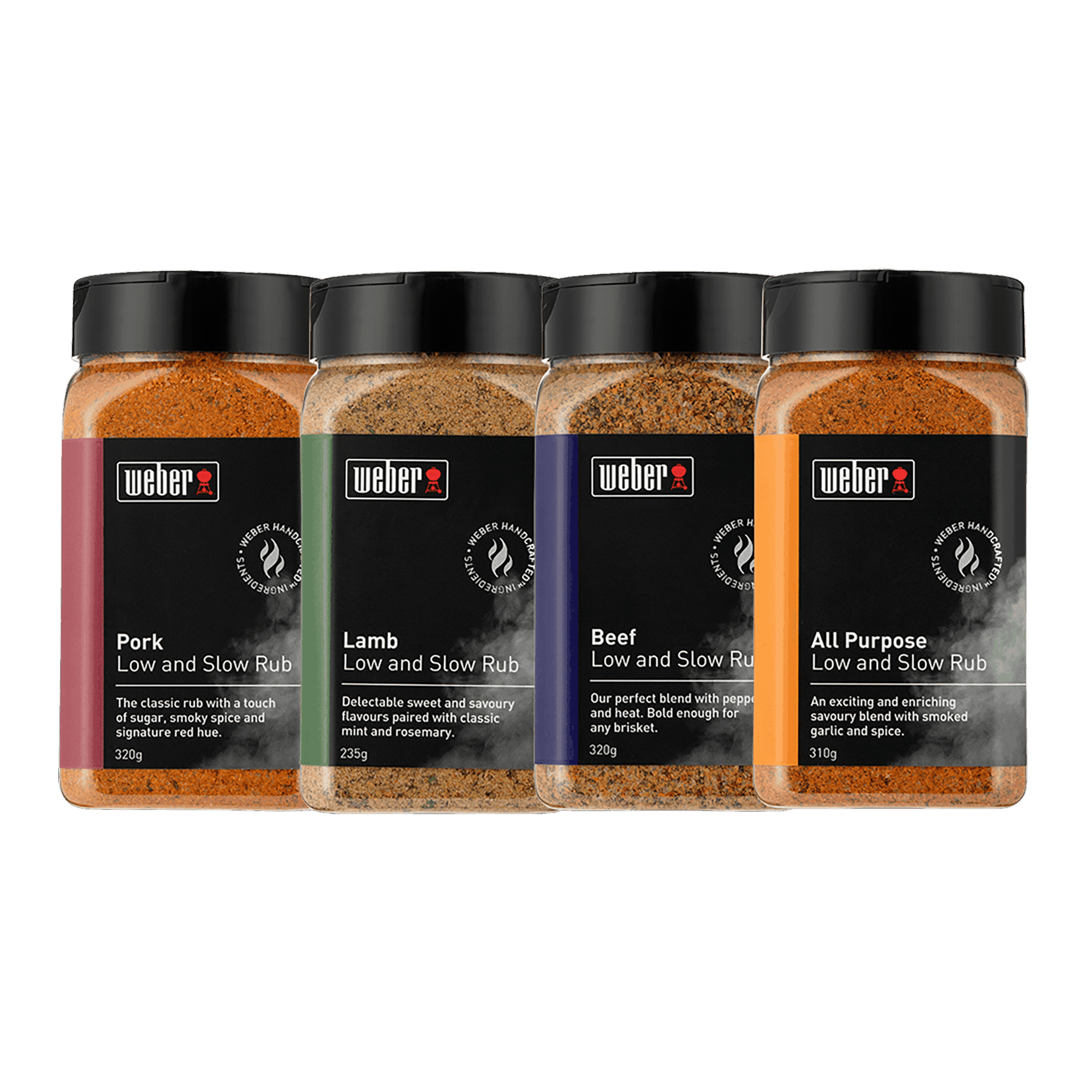 Create a range of delicious low and slow cooked meals with Weber’s incredible range of Handcrafted Low and Slow Rubs. Packed with big flavours to make your next slow smoked meal one to remember, this four pack of Low and Slow Rubs will help you create incredible meals whatever you’re cooking.