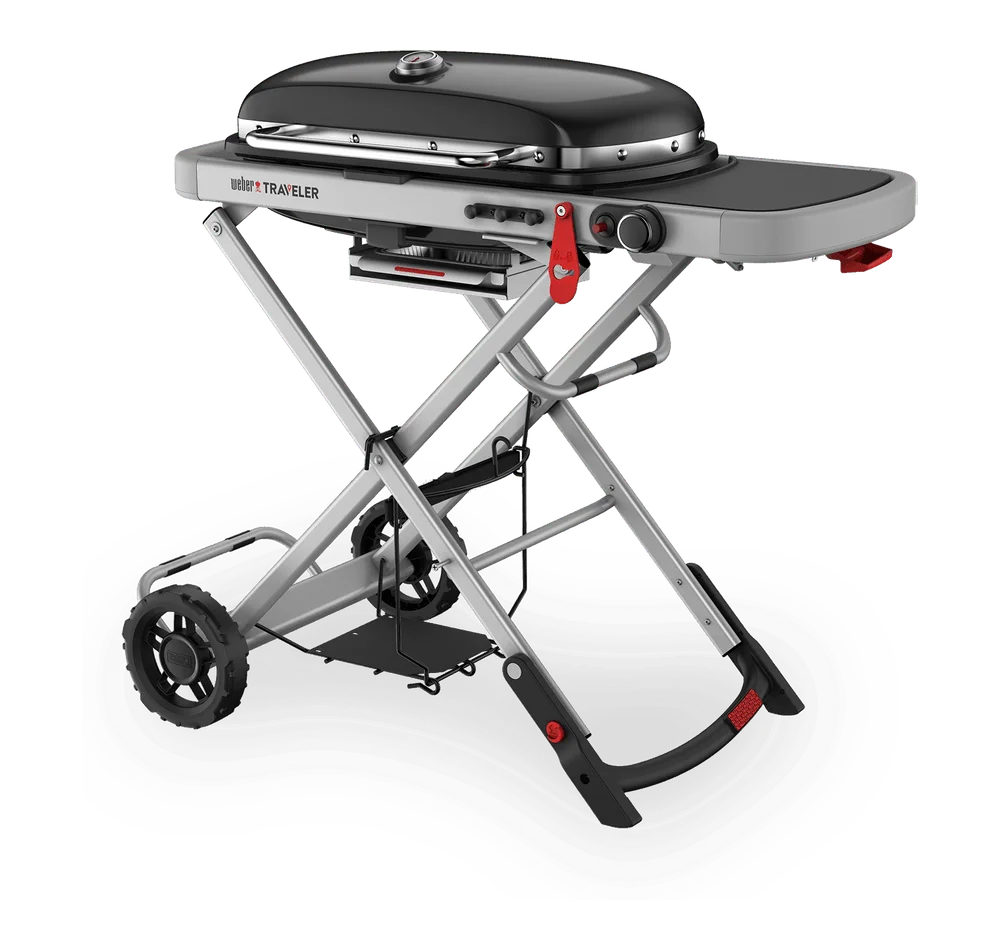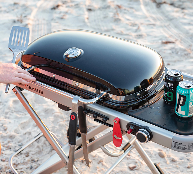 The Weber Traveler is for anyone who wants delicious barbecued food away from home. Whether you're camping, surfing, exploring, or picnicking, its sturdy, compact design makes for a seamless experience, from setup to storage. Feed the adventure with Weber quality food, no matter where the journey takes you.