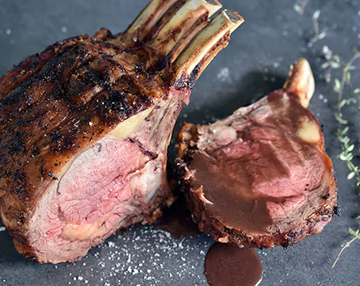 Once the beef has cooked to your liking, remove from the barbecue and leave to rest for 10 to 15 minutes. Carve and serve with the thyme jus.