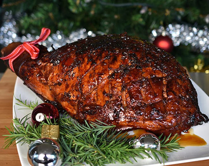 Once the ham has cooked and reached an internal temperature of 68°C, remove the ham from the barbecue. The internal temperature will continue to rise 3° to 6°C while it’s resting. Leave to rest for 15 minutes before carving.