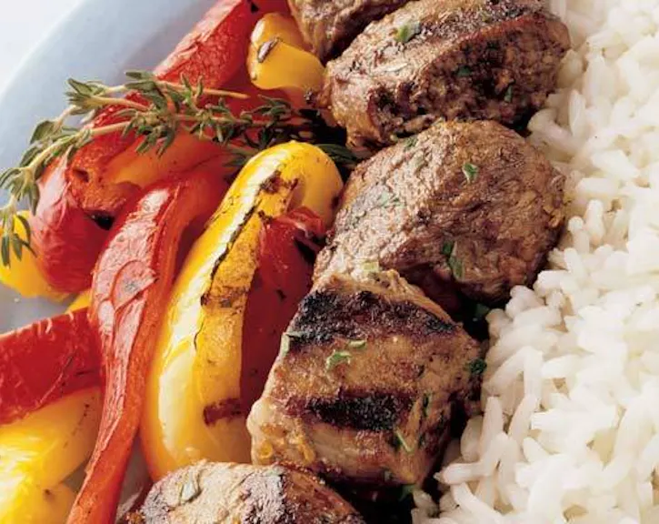 Arrange the lamb onto skewers. Cook the lamb over direct medium heat, with the lid closed, for about 5 minutes on each side, basting with the boiled marinade once during cooking.